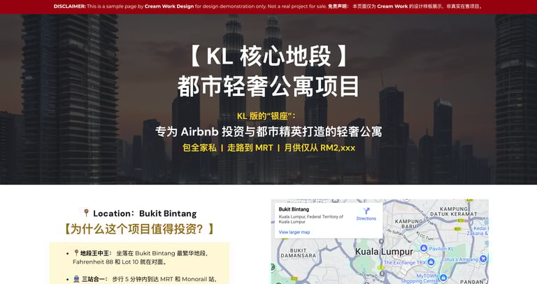 这是一个 Project Landing Page。潜在客户看完后可以通过 CTA button 直接联系您的 WhatsApp。